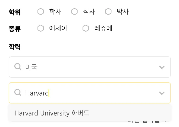 대학들은 대부분 비슷한 에세이 질문들을 가지고 있어요. 그렇기 때문에, 바로 다음 단계에서 안내해 드리는 키워드 검색을 이용해보세요.