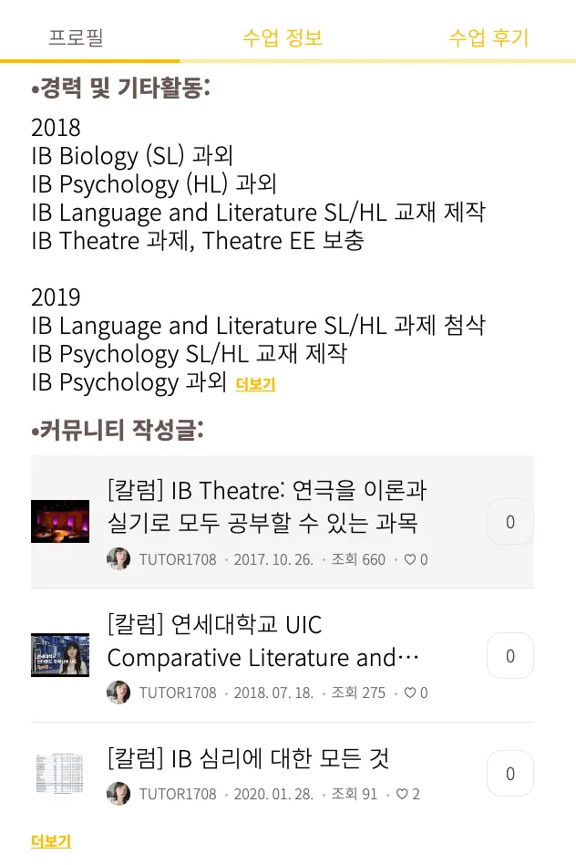 칼럼 상단에 명시되는 저자 이름은 튜터 프로필로 링크가 되어 튜터 프로필 조회