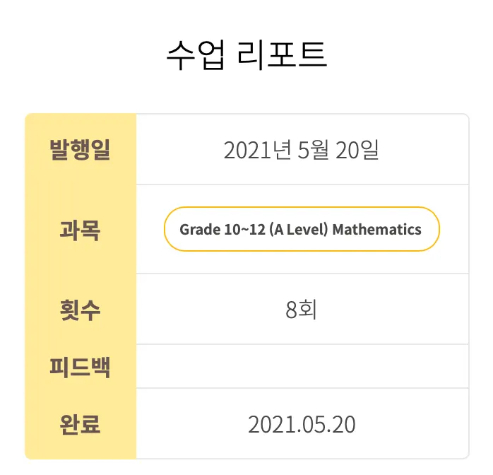 수업이 모두 완료된 이후에는 수업 리포트를 확인할 수 있어요.