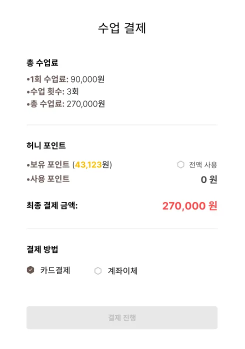 인보이스 발행이 완료되었다면, 계좌 혹은 카드를 통해 수업료를 결제해주세요.